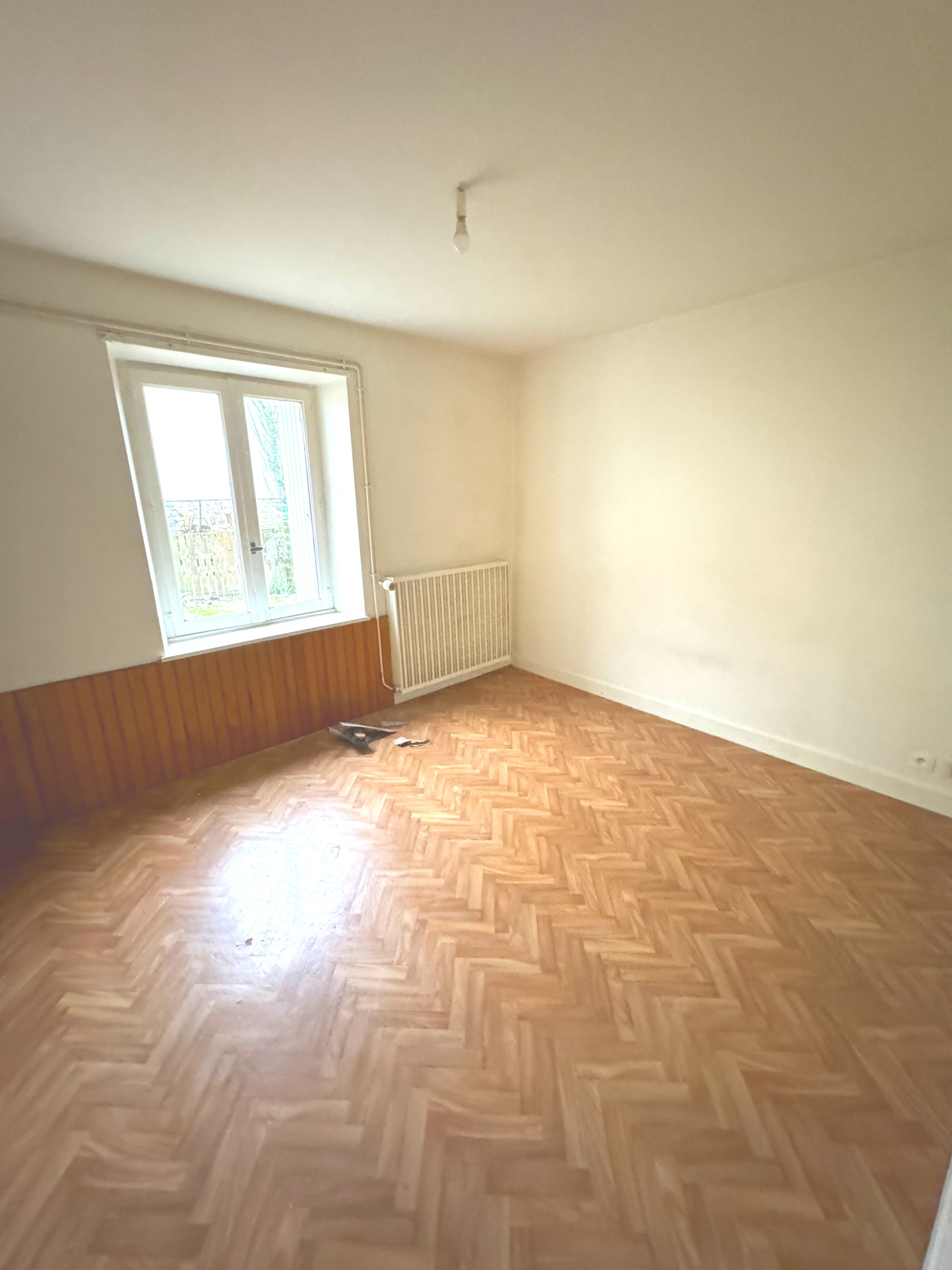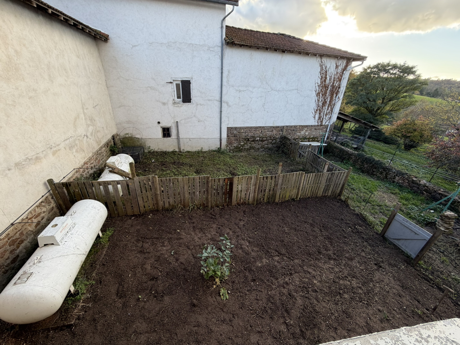 Un jardin et un garage.