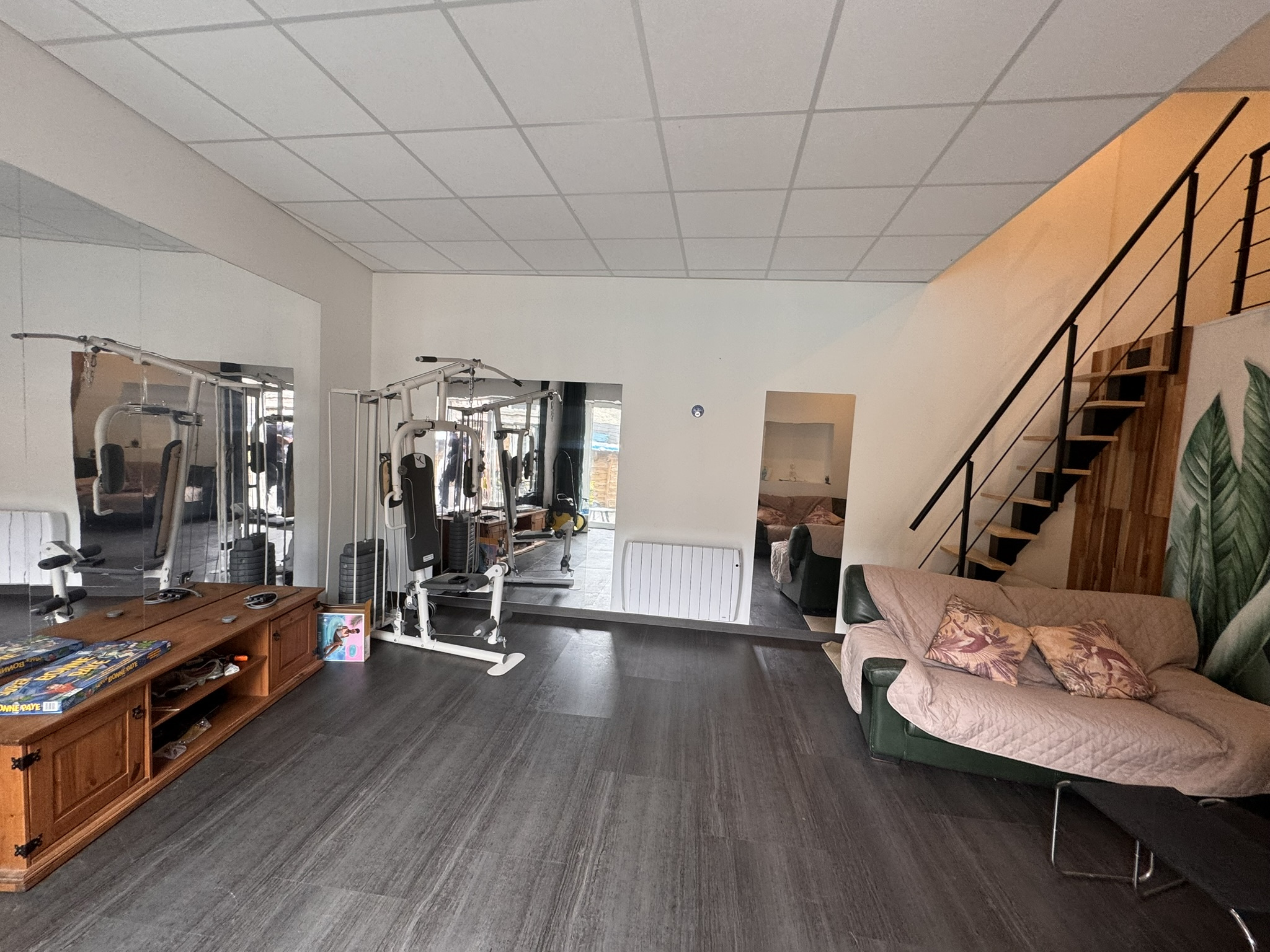 Combles aménageables. terrain 200m² avec piscine 6m X 4m chauffée, dépendance, atelier, pièces annexes à usage de salle de sport et salon.
